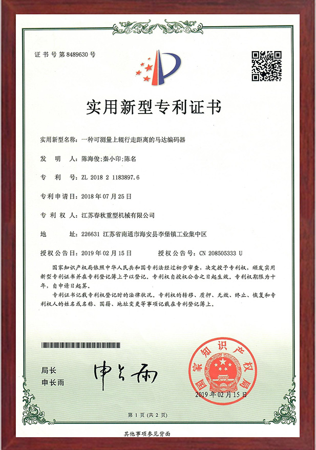 一種可測量上輥行走距離的馬達編碼器專利